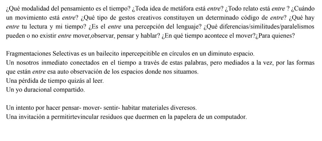 Pieza presentada en el ciclo Experimental 3. Espacio La Mixta. Santiago Chile 2022.