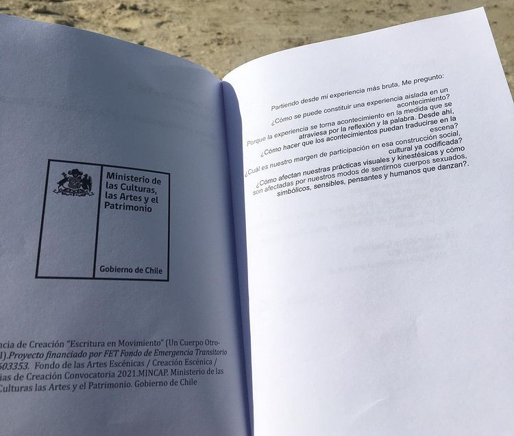 Negro sobre Blanco nace un proyecto de Investigación y creación en artes vivas desarrollado entre Stgo de Chile y Madrid, financiado por el Ministerio de las Culturas y las Artes de Chile MINCAP 2021. Fondo de residencia de Creación. Fondart 2021. La creación devenida concluye en la escritura del texto «Negro sobre Blanco» (Conversacciones sobre la interpretación y creación en danza Vol. II) y una serie de prácticas que articulan distintos gestos creativos- performativos mutantes.